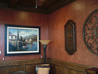 master bath walls and ceilings that match the US master bed room look too. This is a pounced glaze look with a Raw Umber glaze