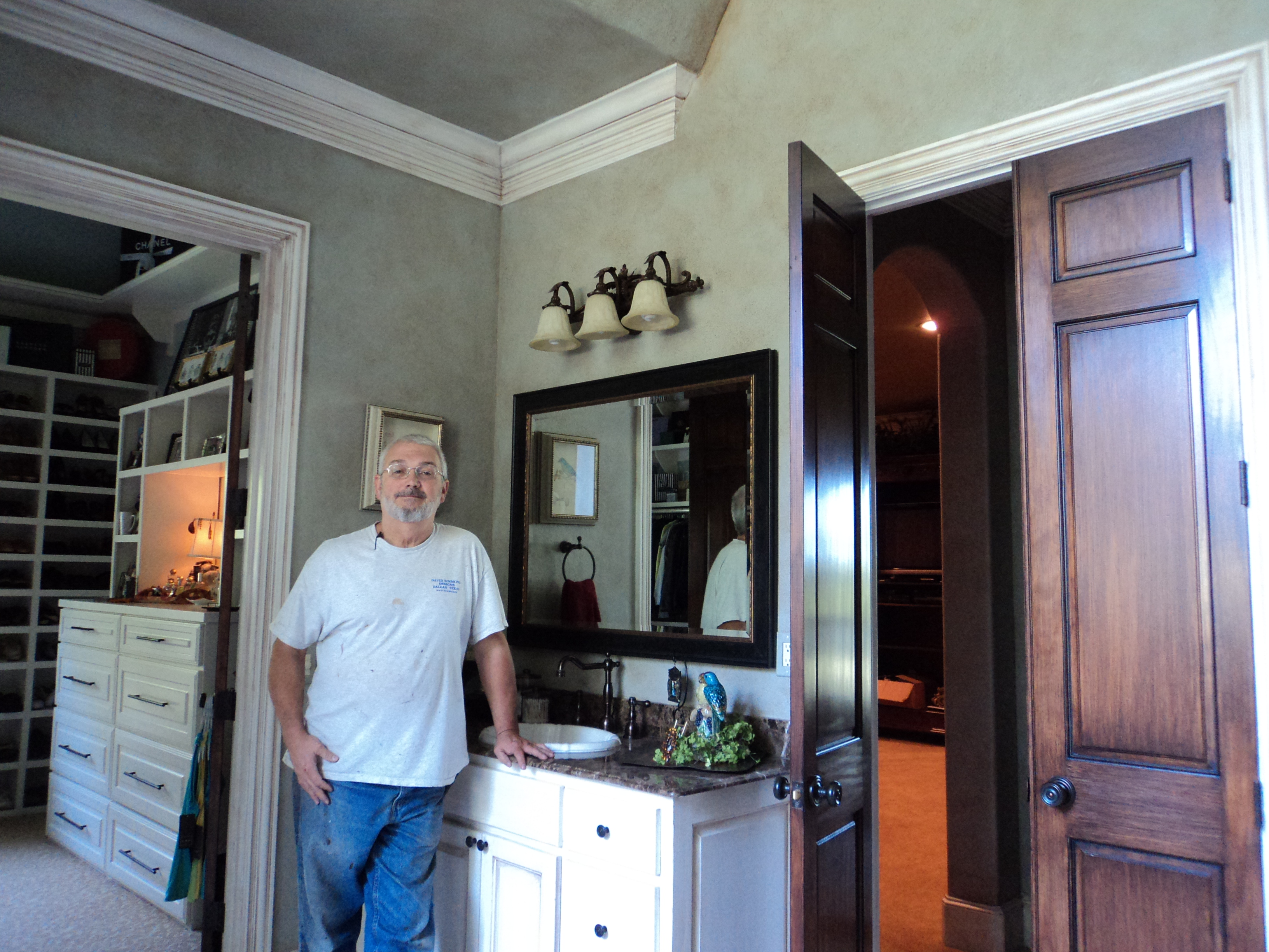 the before look. We added texture the primed the walls then the paint color and then the glaze look to finish up. Beams